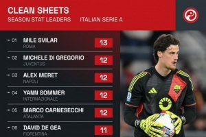 本赛季意甲门将零封榜: